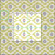 Fabric with vintage green ikat pattern. Fabric with pattern in Boho style. Abstract peacock eyes pattern