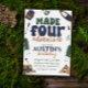 Embarquez pour un voyage élégant et aventureux avec notre invitation Made FOUR Adventure! Avec des couleurs vives et des designs ludiques, la célébration du 4ème anniversaire de votre petit explorateur sera à retenir. Préparez-vous à faire la fête comme jamais auparavant !