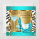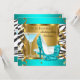 Fabulous 50 Teal Glitter High Heels Zebra Cocktail Invitation
