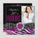 Wild Zebra Black Pink Silk Black, Silver Pink Pearl Jewel, Fabulous 50, Black and White Photo. Elegant Modern and Stylish 50th Birthday Party Invitations. All Occasion Invite Add Photo invitation. All Occasions birthday invites. Customize with your own details and age. Template for Sweet 16, 16th, Quinceanera 15th, 18th, 20th, 21st, 30th, 40th, 50th, 60th, 70th, 80th, 90, 100th, Fabulous product for Women, Girls, Zizzago created this design PLEASE NOTE all flat images! They Do NOT have real Glitter, Diamonds Jewels or real Bows!!