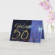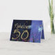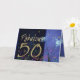 Fabulous 50 in fun text with plenty of colour ... pink, blue, purple, yellow and green flowers against a dark blue background. Perfect party decor / cards for your 50th Birthday Party invitations and decorations.