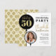 Elegant gold simulated glitter balloons accent "Fabulous 50" and a customized photo for this 50th birthday party invitation. It's classic balloons icons and personalized script name gives all the celebration details with a fun flair.