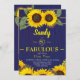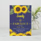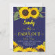 Fabulous and Fifty Birthday, Modern Navy Blue Sunflower Birthday Party Invitation