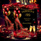 Fabulous Champagne birthday party Red Gold Heel Invitation