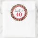 40th birthday sticker perfect for lollipop or sucker party favours. Features red and leopard print.