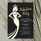 Make a statement with this stylish 40th birthday invitation! The phrase "Fabulous Forty" shines in gold script against a dark grey backdrop, creating a modern yet timeless look. A confident woman in a dress and golden tiara adds glamour on the left, while the right side holds all the party details in a clean sans serif layout. The back is fully adorned with the same woman graphic, enhancing the chic, fashion-forward theme.