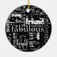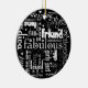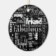 Fabulous, dazzling, stylish and fun are just some of the ways that best friends can be described. White words are laid out against black in a grid format in different typestyles and sizes on this ornament. Tell your bestie just how much you think of her. Available in alternate colours with matching products.
