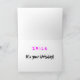 The design on our fun and funky birthday card is a pattern of illustrations of the iconic happy face cartoon in fruity, fizzy colours on a dayglo pink background. Inside the card are the words, Smile, it's your birthday! You can personalize the card by changing the text to suit.