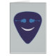 Un design graphique sur le thème de la musique d'un pick-guitare aux yeux de guitare et un sourire...