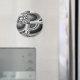 This magnet features a black and white pattern that can resemble many shapes and forms but the whole image looks like an evil face with dark staring eyes and a wide grin.