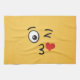 A kissing emoticon. One eye is open, the other is winking. A heart is shown leaving the kissing mouth.