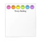 This pad has a row of faces in rainbow colours of pink, orange, yellow, green, blue, and purple across the top, and the words "Keep Smiling". Text may be personalized.