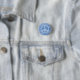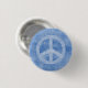 Peace symbol button pin in faded blue.