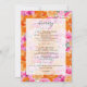 Welcome guests with this faded floral wedding itinerary card, featuring pink and orange vibrant summer florals with a soft transparent overlay for a modern, airy feel. Perfect for a summer destination wedding, this welcome letter with schedule blends style and function—ideal for a wedding welcome bag insert, order of events, or day-of timeline.