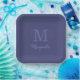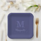 Faded Navy Blue Name and Initial Monogram Paper Plate