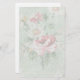Writing paper with a vintage texture design with a faded grayish white background and a delicate pattern of flowers, leaves and roses. This vintage looking paper is old and worn looking giving it an aged look.