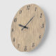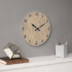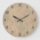 This clock features lovely background art depicting the curl and grain of old faded wood. The hours are marked in dark grey numbers in a friendly script font. This clock is customizable, so you can change the font, remove the numbers, add your own text, or make any other changes you like for a unique clock.