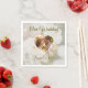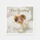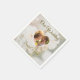 Add a romantic touch to your wedding table with this elegant paper napkin design. Featuring a dreamy white rose petal background photo by Destei, faded beneath a white overlay, the design includes a heart-shaped photo template where you can showcase a picture of the couple. Beneath the photo area, personalizable text fields allow you to include the names and wedding date, making this a thoughtful and stylish complement to your wedding stationery suite. Perfect for timeless and garden-inspired celebrations.