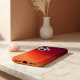 VIVIDLUXE Modern Aesthetic. Protect your phone with the warm glow of fading embers. This protective case features the Fading Embers design—a swirling gradient of burgundy, fiery orange, and peach that creates a hypnotic, warm pattern. The text-free, minimalist artwork offers a sophisticated and calming look, making your iPhone or Samsung device a standalone piece of art.