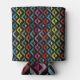 This can cooler has a geometric design of half-diamonds repeating across the design in fading colours.