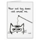 You've bought lots of cat toys to keep Angry Cat happy. The problem? Getting him to actually play with them. Angry Cat's owners resort to all kinds of coaxing, including bonking him right on the head with the toy. Angry Cat's reaction? He is not amused. The perfect card for cat owners, cat lovers, a vet, a pet sitter, a cat guy, or a crazy cat lady. In fact, just for anyone that needs a laugh. You can see more of my Angry Cat designs in my Zazzle shop here: http://www.zazzle.com/funkychicdesigns
