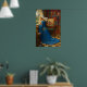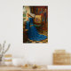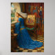 Fair Rosamund by John William Waterhouse is a richly detailed, medieval-inspired scene filled with quiet tension and romantic mystery. A young woman in a deep blue gown leans at a stone window, hands clasped in thought, her long hair braided beneath a pale veil that catches the light. Outside, the distant architecture and garden hints at a world of courtly intrigue, while inside the chamber the warm reds, patterned textiles, and storybook imagery suggest legends unfolding just beyond the frame. Waterhouse balances softness and drama through contrasting colors and textures, turning Rosamund’s stillness into the emotional center of the painting. The result feels intimate and theatrical at once, like a private moment suspended in a larger tale of love, secrecy, and fate.