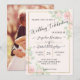 "Faire-part de mariage à motif floral aquarelle or avec photo." Simple et moderne, mais élégant et design sophistiqué avec des éléments dorés, des grappes florales peintes à l'aquarelle et votre photo de fiançailles au verso. Un rendu doré tridimensionnel subtil avec des touches de paillettes délicates, des lignes de bordure et de séparation sont associés à une écriture manuscrite en calligraphie. Une mise en page de style typographique avec séparateur esperluette a été créée par l'artiste et designer licenciée internationale, Audrey Jeanne Roberts. Tous droits réservés.