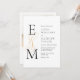 Cette simple et élégante invitation de mariage tout-en-un avec RSVP est intemporelle dans son attrait avec sa palette de couleurs classique d'or, de noir et présente une belle esperluette à paillettes dorées avec des fioritures luxueuses et romantiques. Le design, qui comprend votre monogramme, a une esthétique minimaliste mais classique en raison des polices serif vintage utilisées. Le verso comporte un espace pour une photo et vos informations de RSVP et de site web de mariage. Vous pouvez supprimer ces éléments entièrement si vous le préférez. Si vous souhaitez modifier les polices ou les couleurs, repositionner les éléments ou ajouter des illustrations, faites défiler les boîtes de modèle de texte et cliquez sur "Modifier à l'aide de l'outil de conception". Conçu dans le cadre de ma collection de mariage élégante Elina. N'oubliez pas de parcourir les autres articles pour créer un look sophistiqué et coordonné pour votre jour spécial et les événements environnants. Si vous avez besoin d'aide pour personnaliser cette invitation, vous pouvez obtenir de l'aide GRATUITEMENT du service de conception de Zazzle (https://www.zazzle.com/live) ou m'envoyer un message via l'outil de messagerie de Zazzle. REMARQUE IMPORTANTE : Ma philosophie de conception chez Lady Marie Paperie est de rendre la planification d'une célébration élégante plus abordable et écologique. Je rationalise les essentiels pour les invitations de fête et la décoration afin que vous puissiez créer un événement magnifique qui étonnera vos invités tout en vous faisant économiser beaucoup d'argent, c'est pourquoi j'inclus toujours les informations de RSVP et de site web de mariage au verso de mes invitations. Les produits au look élégant PEUVENT être abordables ! Cependant, je propose des enclosures de RSVP et de détails séparées, si vous préférez, dans la collection pour cet ensemble d'invitations. De plus, si vous avez besoin de quelque chose que vous ne voyez pas dans cette collection, n'hésitez pas à me contacter en utilisant le système de messagerie de Zazzle. Je serais ravi de le concevoir pour vous !