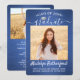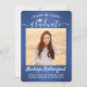 Partagez la joie d'une remise de diplôme de lycée ou d'université avec ces faire-part personnalisés 2 photos bleus, blancs et argentés. (ASTUCE DE PLACEMENT D'IMAGE : Un moyen simple de centrer une image exactement comme vous le souhaitez est de la rogner avant de la télécharger sur le site Web de Zazzle.) Ce modèle comprend le nom du diplômé, l'année de promotion et l'école, et est simple à personnaliser avec la formulation de votre choix, comme les détails de l'invitation à la fête, les noms des parents, les honneurs spéciaux, le titre du diplôme, la citation inspirante préférée, les coordonnées du diplômé, les projets d'études futures ou le nouveau poste. Si un texte n'est pas souhaité, il suffit de le supprimer. Le design présente un fond brossé bleu royal, une casquette de diplômé en faux foil, une calligraphie de style manuscrit, une typographie minimaliste moderne et deux photos de votre choix, telles que des photos de fin d'année ou des images de la cérémonie de remise des diplômes. Veuillez noter que le fond est une couleur imprimée et