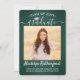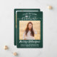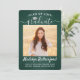 Partagez la joie d'un diplôme d'études secondaires ou collégiales avec ces annonces personnalisées 2 photo vert, blanc et argent. (CONSEIL EN MATIÈRE DE PLACEMENT D'IMAGE : Une façon simple de centrer une image exactement comme vous voulez est de la rogner avant de la télécharger sur le site Zazzle.) Ce modèle comprend le nom du diplômé, l'année de cours et l'école, et il est facile de customiser avec n'importe quel libellé de votre choix, comme les détails de l'invitation du parti, le nom des parents, les distinctions spéciales, le titre du diplôme, la citation inspirante préférée, les coordonnées du diplômé, les plans de formation futurs ou le nouveau poste. S'il n'y a pas de texte non voulu simplement le supprimer. Le design comprend un arrière - plan brossé vert foncé, un casquette de tableau de mortier imitation feuille, une calligraphie manuscrite de style, une typographie minimaliste moderne et deux photos de votre choix, telles que des images de haut niveau ou des images de la cérémonie de début. Veuillez noter que l'arrière - plan est imprimé en couleur et non en papier métallique. Ces élégantes cartes de faire-part de remise de diplômes sont un moyen élégant de partager votre fête spéciale avec votre famille et vos amis. Félicitations au diplômé !