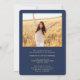 Partagez la joie d'un baccalauréat ou d'un collège avec ces annonces personnalisées 2 photo bleu marine et or. Toutes les images et le libellé sont simples à personnaliser. (CONSEIL EN MATIÈRE DE PLACEMENT D'IMAGE : Une façon simple de centrer une photo exactement comment vous voulez est de la rogner avant de la télécharger sur le site Zazzle.) Ce modèle est simple à customiser avec tous les détails de votre choix, tels que les renseignements sur l'invitation du parti, le nom des parents, les distinctions spéciales, le titre du diplôme, la citation inspirante préférée, les coordonnées du diplômé, les plans d'études futurs ou le nouveau poste. S'il n'y a pas de texte non voulu simplement le supprimer. Le design comprend un casquette de planche de mortier en feuille d'or, de la calligraphie manuscrite de style, de la typographie minimaliste moderne et deux photos de votre choix, telles que des images de haut niveau ou des images de la cérémonie de début. Ces élégantes cartes de faire-part de remise de diplômes sont une façon branchée et chic de partager votre fête spéciale avec votre famille et vos amis. Félicitations au diplômé !