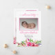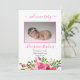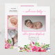 Boho petite fille rose vif aquarelle bouquets floraux quatre photo collage Faire-part de naissance à deux côtés. Ajoutez simplement les photos et les détails de votre bébé précieux pour compléter ce design. Conception composite par Holiday Hearts Designs (droits réservés).