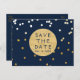 Cartes de faire-part à points de confettis brillants bleus et or. Articles assortis disponibles.