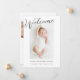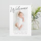 Faire-part de naissance photo moderne Welcome Baby. Carte Faire-part de naissance multi-photo avec place pour une photo de bébé caractéristique sur l'avant et trois photos plus petites sur l'arrière. Design moderne minimaliste avec script Bienvenue sur le devant de la faire-part de naissance.