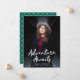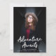 Annonces de fin d'études branchées présentant la photo verticale du diplômé avec "Adventure Awaits" en lettres manuscrites blanches. Personnalisez le devant de l'annonce d'obtention de diplôme d'Adventure Await en ajoutant le nom du diplômé, le nom de l'école et l'année de fin d'études. La faire-part s'inverse pour afficher un élégant motif de treillis vert et blanc.