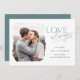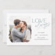 Une carte de faire-part fiançailles élégante et moderne, avec une seule photo verticale ou portrait dans un cadre unique peint en brosse. "L'amour toujours" apparaît à côté du script écrit à la main, avec votre faire-part personnalisée (avec "nous sommes engagés"), les noms, et des détails supplémentaires.