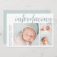Une carte faire-part de naissance élégante et moderne avec trois photos (une carré et deux horizontales), avec "introduction" en haut dans la typographie de script de brosse à lettres à la main. Personnalisez avec le nom de votre bébé et les statistiques de naissance sur le côté gauche. Ajoutez un message personnel à l'arrière, ainsi qu'une photo supplémentaire.