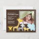 Notre faire-part de naissance animal de photo de bébé de jungle mignonne de safari est une manière douce d'annoncer à votre famille et amis que votre bébé ou bébé nouveau-né est arrivé. Notre carte populaire de faire-part de photo de thème de safari comporte le singe, la girafe, le zèbre, le lion et l'éléphant les plus mignons réglés sur un arrière - plan brun. Ajoutez votre photo et l'information et vous sont tous placent pour aller ! studio de ©Cocoa