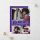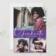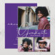 Ajoutez vos 3 photos préférées sur le devant de ces annonces de remise de diplôme qui présentent la promotion et le mot GRADUÉ en lettrage chic sur fond violet (la couleur peut être modifiée en utilisant le lien Personnaliser davantage et nos outils de conception) avec vos détails au dos. Plus de modèles dans notre boutique.