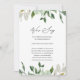 Ce simple avis de report de mariage botanique vert sauge et blanc est un moyen simple et doux de faire savoir aux invités que la cérémonie a été reportée en raison d'événements imprévus. Ce beau design présente une calligraphie élégante "nous sommes désolés", et des feuilles aquarelles.