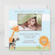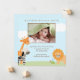 Adorable annonce de naissance de bébé avec une girafe, un zèbre, un lion et un adorable petit oiseau bleu. Cocoa