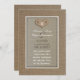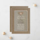 Ces annonces d'élopement présentent un design de burlap qui comprend un coeur avec votre monogramme sur burlap bronzé comme point focal. Autour du burlap bronzé est un cadre blanc encadré par un burlap bronzé plus foncé. Ce faire-part d'elopement est une excellente façon d'annoncer votre elopement à la famille et aux amis. Copyright henishouseo
