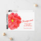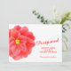 Carte de report de mariage avec une œuvre d'art de fleur de camélia rouge aquarelle sur le devant et votre propre message et photo de couple au verso. D'autres articles de printemps assortis sont disponibles. Œuvre aquarelle et design par Sarah Trett www.sarahtrett.com pour www.mylittleedenweddings.com