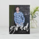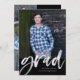 Faire-part de diplôme avec une grande photo et une superposition de script moderne. 3 photos à l'arrière.