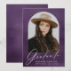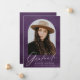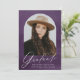 Élégant faire-part de graduation avec la photo du diplômé à l'intérieur d'un cadre d'arche avec un arrière - plan d'aquarelle violette. "Graduate" est affiché dans un script de calligraphie moderne blanc avec le nom du diplômé, l'école, et l'année d'études montré ci-dessous. La faire-part de graduation de la photo s'inverse pour afficher un arrière - plan d'aquarelle violet assorti avec de l'espace pour du texte et des photos supplémentaires.