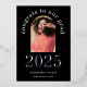 Grad 2025 Arch Photo Black Real Gold Foil Faire-part. Un style moderne pour annoncer la nouvelle de votre diplômé avec 2025 en papier peint en argent réel à côté du reste du texte en blanc sur un arrière - plan noir classique. Facilement personnalisable avec le nom de votre diplômé, le lycée et le message sur le dos, et remplacer l’échantillon de photo par le vôtre qui est en forme d’arc