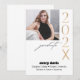Arrière - plan blanc simple moderne avec photo et carte de faire-part de graduation d'accent or—ajoutez simplement votre photo, le chiffre dernier de l'année, le nom, et les détails de l'école.