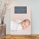 Le faire-part de naissance moderne et chic est doté d'une seule photo verticale/portrait à fond saigné avec un élément de bannière rectangulaire en haut, portant le nom du bébé, la date de naissance et les statistiques de naissance. Ajoutez un message personnel à l'arrière, ainsi qu'une photo supplémentaire.