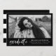 Annoncez votre diplôme avec nos annonces de graduation design et moderne Watercolor Brush Script! Les annonces de graduation modernes affichent la photo du diplômé encadrée en noir avec "diplômé" dans un script de brosse à aquarelle blanche tendance. Ajoutez le nom du diplômé, l'école, l'année de remise des diplômes et les plans futurs. Le faire-part revient à un arrière - plan rayé noir et blanc avec espace pour des photos et du texte supplémentaires.