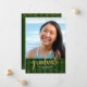 Soyez fier, réjouissez-vous et annoncez au monde que votre groupe favori a atteint son jalon avec cet invitation faire-part étonnant, simple, moderne et personnalisé. Scénario de calligraphie manuscrite à parties scintillant d'or brillant, élégant, blanc sans serif typographie et une photo de votre choix superposent un arrière - plan rayé vert chasseur. Personnalisez le texte personnalisé avec le nom de votre diplômé, le nom de l’école, l’année de cours et la date de fin d’études. Au verso, ajoutez votre note personnelle, la prochaine école où ils vont, les renseignements sur la fête, etc. Des cartes de remerciements, des toppers casquettes, des ventilateurs, des serviettes, des assiettes, des bannières et d'autres cadeaux de remise de diplômes sont également disponibles dans cette collection branchée et élégante. Garanti d'ajouter du plaisir élégant à leur occasion spéciale! Il suffit de remplacer l’échantillon de photo par un de vos propres, de taper les informations de votre grade, de customiser le message au dos, et vous pouvez facilement personnaliser cette véritable invitation de faire-part de graduation de feuille d’or. S'il vous plaît, envoyez-moi un message avec toute question ou demande.